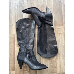 Womens Larroude Louise Leather Graphite Metallic Oil Shiny Cowboy Boot Boho sz 9