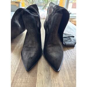Women's Larroude Louise Leather Graphite Metallic Oil Shiny Slouchy Boot sz 9