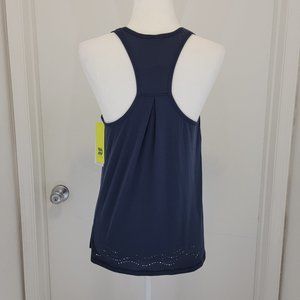 A higher neckline lends coverage while low-cut armholes offer the mobility you need to move and stretch. Your sports bra stays concealed with the racerback design, and you still have plentiful range of motion with a loose fit and sleeveless silhouette. A pleat down the back lends a touch of definition and a hint of pretty, flowy style, while moisture-wicking fabric is intended to absorb moisture during activity