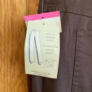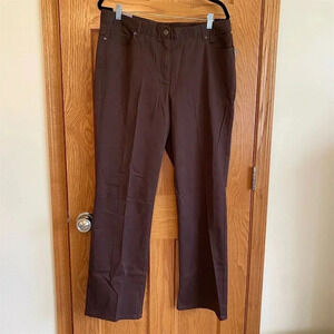 Women's Laura Scott Brown Straight Leg Pants Size 14 Slenderizing Fit NWT