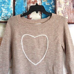 Women's Lauren Conrad Sweater Long Sleeve Heart MEDIUM Taupe Cream