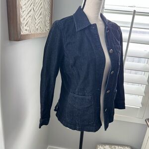 Elevate your style with this classic denim jacket. Perfect for any occasion, this jacket offers both comfort and versatility. Classy and stylish. I loved the bottoms on this!size medium and in great condition!