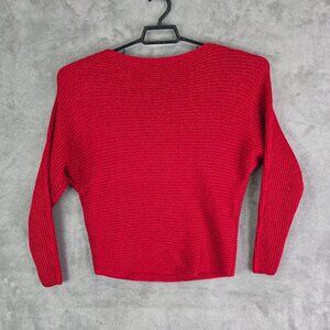Womens Lauren Ralph Lauren Red Metallic Ribbed Knit Sweater Long Sleeve Size M