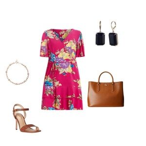 Women's Lauren Ralph Lauren Spring Summer Pink Floral Faux Wrap Dress Size 2
