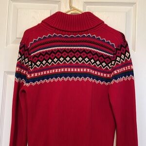 Women’s Lauren Ralph Lauren Sz S Fair Isle V neck sweater big collar red button