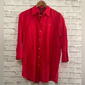 Women’s. Lauren Ralph Lauren. Red tunic blouse. Collared. 3/4 split sleeves. Button down. 100% linen. Excellent condition. Size Medium.