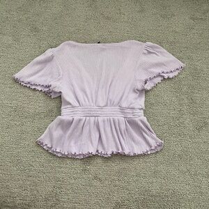 Women’s Lavender Babydoll Blouse Ruffle Spring Summer Coquette Casual Minimalist