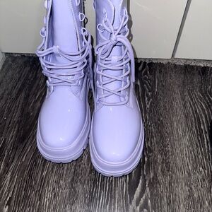 Step out in style with these chic lavender boots. Perfect for adding a pop of color to any outfit.