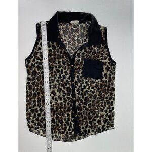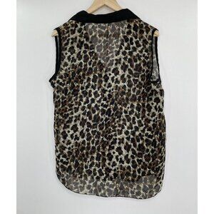 Women’s Lavish Loepard Sheer Chiffon Collared Blouse See Measurements For Size