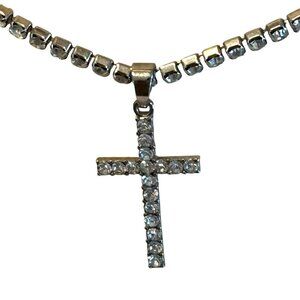 Women's Layered Double Strand Crystal Cross Necklace Religious Statement 19"