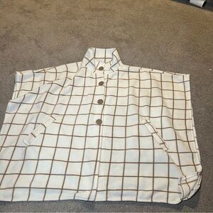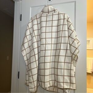 Women’s LeModa Cape Wrap Poncho Type Jacket White Brown Soft Warm