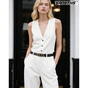 Women's belt with double loop buckle design is a classic closet accessory to add a fashionable touch to your outfit, this trendy women's belt can be aptly paired with your jeans or dress, whether you wear it with casual or formal wear, you can pair it with this casual belt
