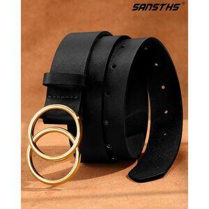 Women's Leather Belt Jeans Pants Fashion Waist Belt Ring Buckle Black Gold