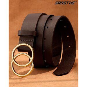 Women's Leather Belt Jeans Pants Fashion Waist Belt Ring Buckle Coffee Gold