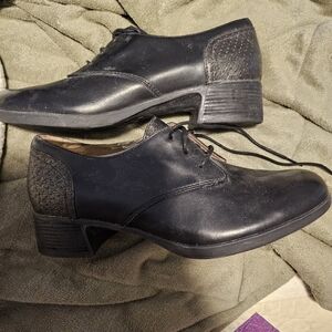 Elegant black loafers with lace-up design. Perfect for versatile styling. Never worn so they are in perfect condition. They are a little dusty but with a good wipe down they are brand new. They are real leather shoes. They are in European size so its a size 38. Will fit 7.5 comfortably, should also fit 8. Comes from a smoke free home. Will ship same or next day. Open to reasonable offers.