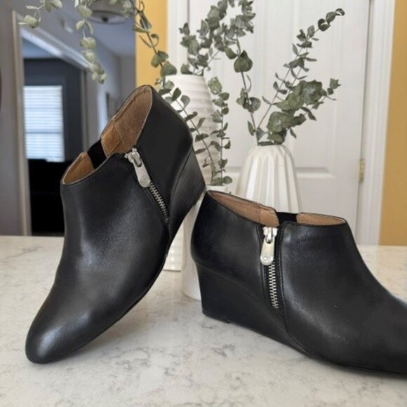 Cute black leather Adrienne Vittadini booties Size 9M. Cute with jeans, dress - so versatile. Like new - leather and heel in great shape, lots of tread. Zippers work and provide cute detail. 2.5 inch heel.