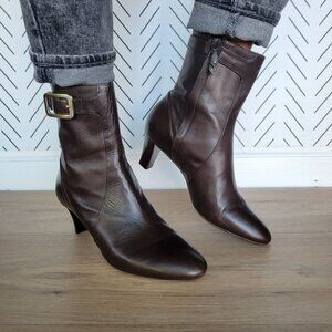 🤩Womens Leather Boots Cole Haan Size 7C Low Kitten Heel Booties Brown Gold New