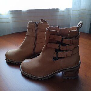 Women's Buckle Boots in Tawny Tan by Seychelles. Fall 2025 Buckle Style. Love the natural, somewhat rawness of the leather. And they smell good too!!