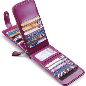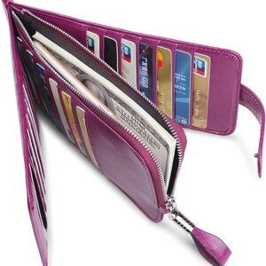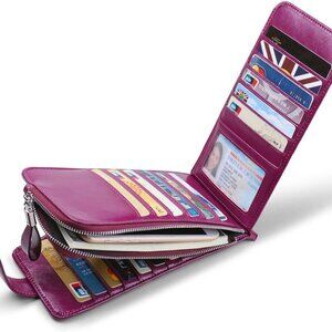 LARGE CAPACITY - Our womens card holder wallet has 25 Card Slots, 1 ID Window and 1 Large Zipper Pocket, can be placed with many cards, paper money, larger bills, checkbook, coins and even your smartphone. It will be a good size to hold your cards & everything else you need to carry.
