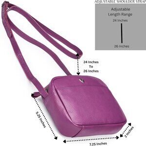 Features: Handmade in India using genuine top grain leather, this compact crossbody features a buttery soft texture and a clean, sophisticated look. It has multiple pockets including a credit card case, a front slip pocket, and three zipper compartments, perfect for organizing lipsticks, keys, small makeup, or your phone. The strong, adjustable shoulder strap makes it comfy for daily errands, travel, or nights out.