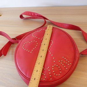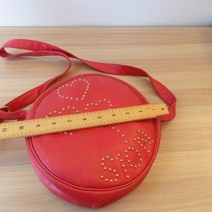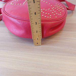 MADAM SION Womens Leather Crossbody Bag Pink Rounded Circle Studded Heart