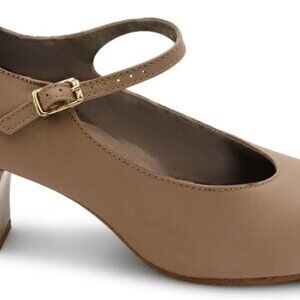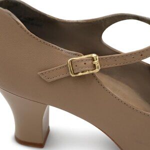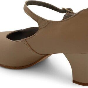 Women's Leather Dance Shoe Size 7.5 Wide Buckle Mary-Jane Non-slip Heel