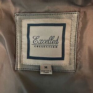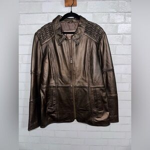 Women’s Leather Excelled Collection Zip Jacket metallic bronze belt strap Size M