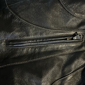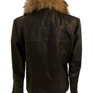 Womens Leather & Fur Collar Jacket Mob Wives Biker Moto Size M Espresso