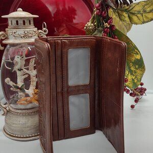 NWT. Color – Coffee. RFID Blocking Trifold wallet. Wallet has 6 card slots, 2 ID windows, 1 full-length cash slot, 2 main compartments, 1 zipper coin pocket. Made of high quality PU Leather with embossed orchids on the surface. Very soft. Equipped with advanced unique proprietary blocking material, which blocks RFID signals and protects the valuable private information stored on RFID chips from unauthorized scans.