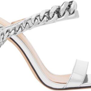 Women's Leather Silver Stiletto Sandals High Heel Chain Detail Elegant