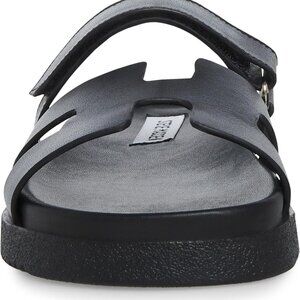 Women's Leather Slide Sandals 7.5 Flat Flatform Adjustable Stylish Comfortable