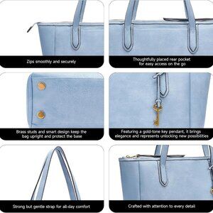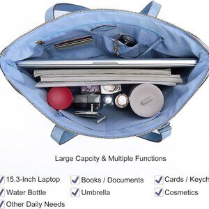 Features: Spacious leather tote with a sleek, classic silhouette inspired by NYC street fashion. Large capacity with well-organized compartments, perfect for work, travel, or everyday errands. Zipper closure keeps your essentials secure, and the lightweight design adds to its practicality.