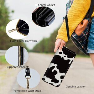 Features: This large-capacity leather wristlet features a chic cow print, a smooth zipper closure, and a detachable wrist strap—ideal for keeping your essentials handy on the go. It’s thoughtfully designed with 8 card slots, multiple compartments for cash, coins, keys, and small items, all comfortably fitting in one stylish piece. The soft leather lining and quality hardware give it a luxe feel that’s built to last.
