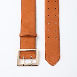 Women's Leather Wide Belts Fashion Thick Brown Suede With Gold Buckle Belt