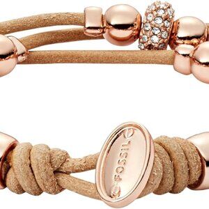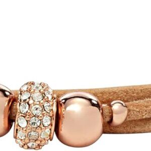 Women's Leather and Stainless Steel Bracelet Rose Gold Bead Chain 7.5"