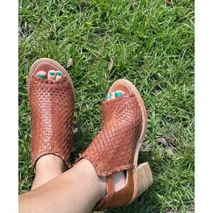 Preowned and barely worn! In EXCELLENT Condition Women's Leather woven weave Diba True Zest Fully Open Round Toe Sandals/Booties/Shoes/Boots 8 Medium. with a sturdy block 3 1/2" heel. Leather upper, lining and sole. These are super comfy and the leather has some give to it which is so nice.