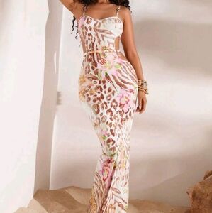 Women's Leopard & Floral Print Fitted Dress,Floral Print Halter Criss-Cross Wrap