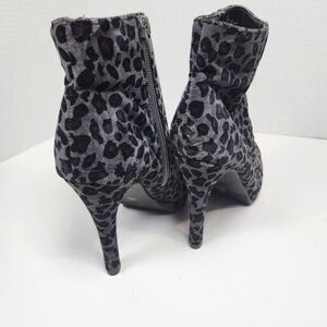 Women's Leopard Print Booties Stiletto Heels Dark Gray Velvet Size 8M