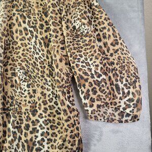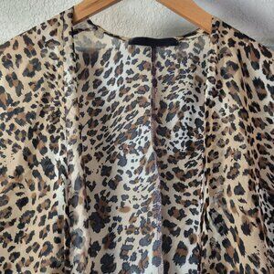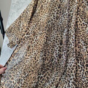 Womens Leopard Print Duster Kimono Semi Sheer Open Front Cardigan resortwear