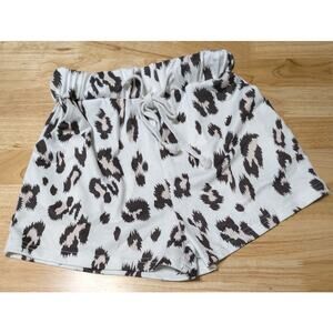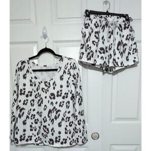 Women's Leopard Print Long Sleeve Top & Drawstring Short Set 2pc Loungewear Sz S