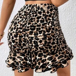 Women's Leopard Print Ruffle Hem A-Line Mini Skirt