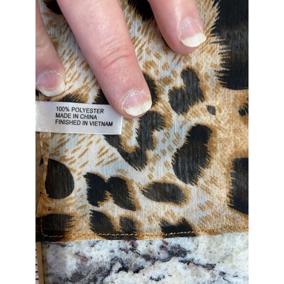 This versatile leopard print scarf elevates any outfit with its bold pattern. Crafted from lightweight polyester, it drapes elegantly around the neck.
