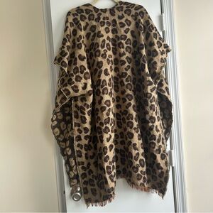 Women’s Leopard Print Short Sleeve Sweater Poncho Wrap OS Cheetah Mob Wife