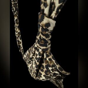 Women’s Leopard Print Sleeveless Maxi Dress Low Cut Ruched straps Size Small S