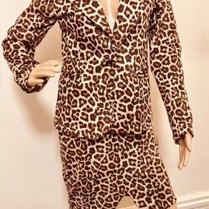 Step back in time with this vintage designer leopard print velvet like suit by Trapis de Luxo. This two piece suit includes a mid-length jacket with a single-breasted cut and one-button front button style. The jacket sleeves are fitted and the jacket/coat length is perfect for any occasion. The long sleeve jacket is tailored and has a classic fit, making it a great choice for business meetings.