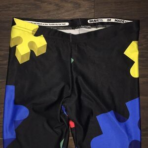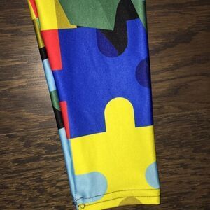 Womens Lets Fight Autism Puzzle pieces rainbow Leggings Tight yoga stretch Pants