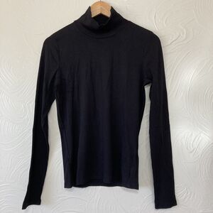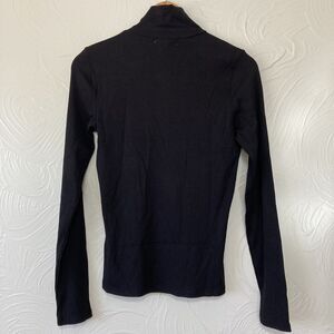 Womens Lett Black Long Sleeve Ribbed Turtleneck Top Solid Color Size L Basic
