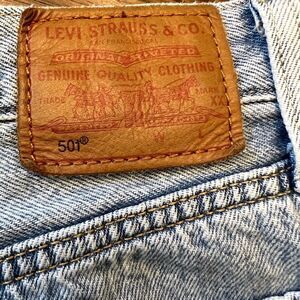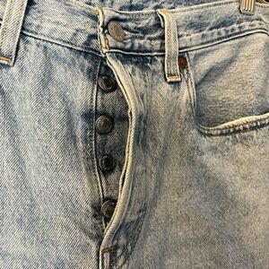 Women's Levi 501 Button Fly Denim straight leg Jean 27 x 26 Raw Hem Light Wash