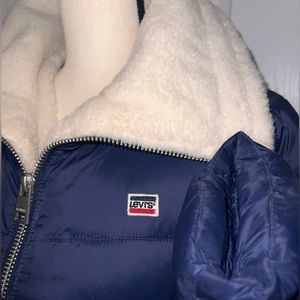 Heavy duty zipper that zips up to cover face along with drawstring to keep you extra warm on those snowy windy days. Front pockets w/ zipper so you won’t lose keys in snow. Jacket shows no signs of distress or usage.