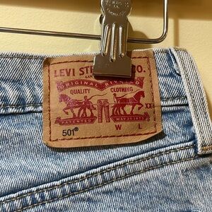 Womens Levi’s 501 Button Fly Light Wash Denim Shorts